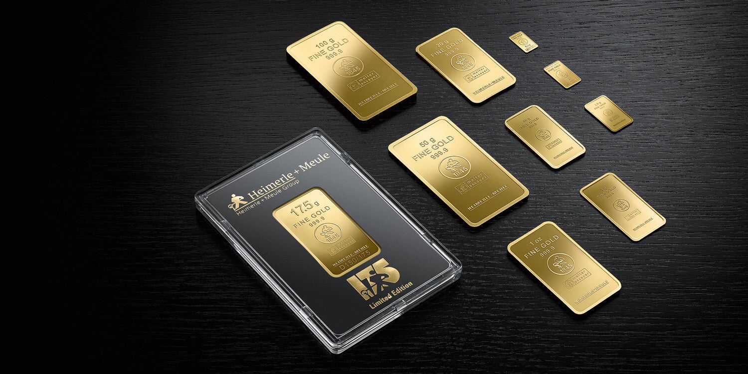 Geprägte Edelmetall-Barren aus Gold und Silber von Heimerle + Meule – das sind dauerhafte Werte in schöner Form. Geradlinig in der Gestaltung und hochwertig verarbeitet, verlieren sie über Generationen hinweg nichts an Substanz. Die Prägung verleiht den durch eine Blisterverpackung umhüllten Barren eine edle Anmutung. Eine Option auf die Zukunft, die über den Tag hinaus Sicherheit und Zuversicht gibt.